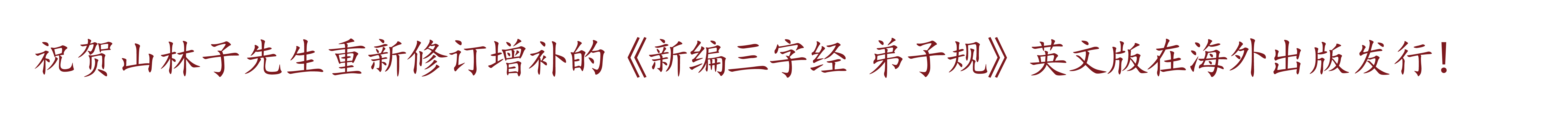 热烈庆祝山林子自然道德智慧教育网于2022年4月3日正式迁移到新网址:山林子自然道德智慧教育网 (shanlinzi.com.cn)。 原网址改版为 山林子自然道德慧智护生网 (huizhihusheng.com)。 山林子先生新作《新编道德经》英文版译著已经在德国出版,有需要的朋友可以在 More Books(多读书网站)购买,其它已出版的译著也可在 Amazon(亚马逊网站)购买。